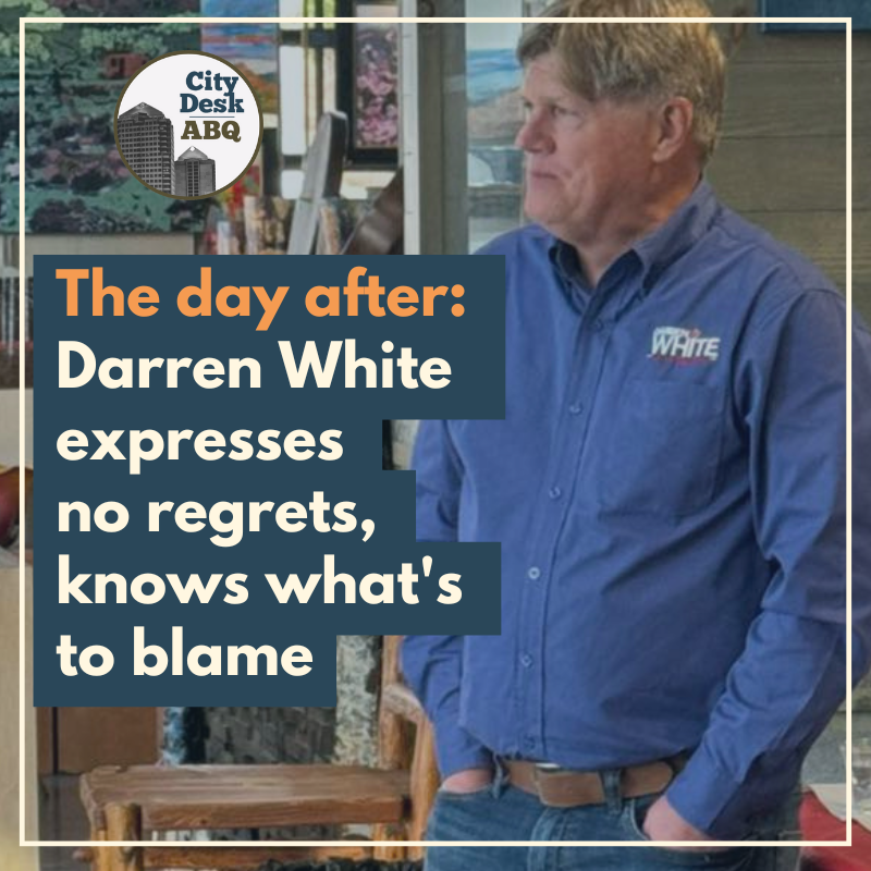 What initially looked like a thrilling election night in Albuquerque ended with a whimper less than an hour after polls closed when mayoral candidate Darren White... Read more.